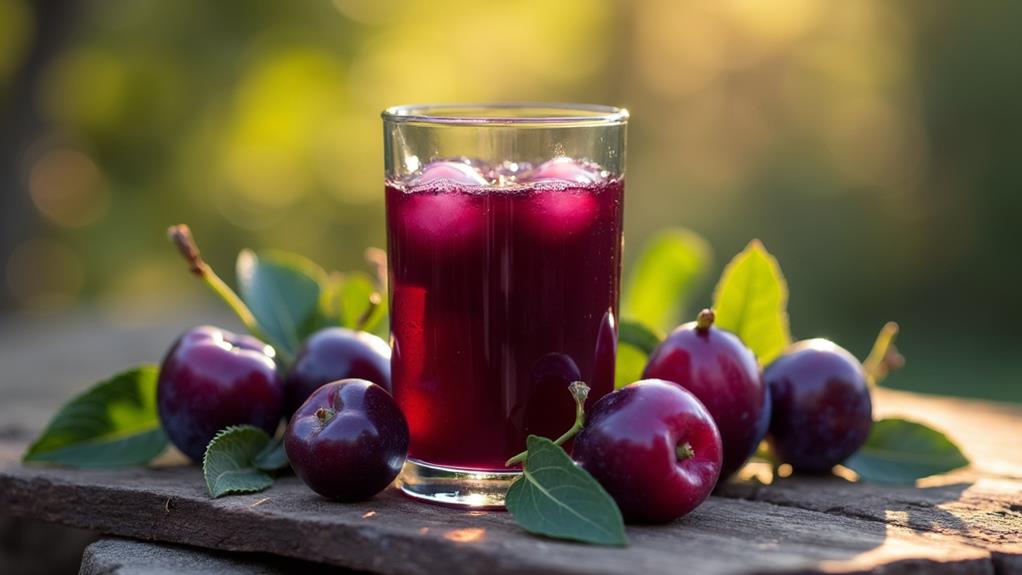 The natural acidity in damson plum juice can also help balance your blood sugar levels. This makes it a revitalizing option, especially if you're monitoring your glucose intake. So, when you're looking for a tasty, nutritious drink, damson plum juice stands out as a tangy, health-enhancing choice that doesn't rely on cane sugar to please your palate.