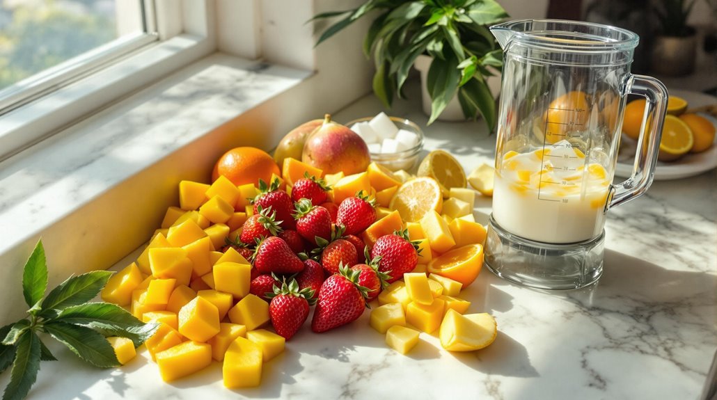 Honeydew is an excellent choice for juicing, offering you a reinvigorating drink packed with essential nutrients. You'll get over 50% of your daily vitamin C needs per cup, plus crucial B-vitamins, potassium, and magnesium. It's easy to juice, naturally sweet, and contains just 60 calories per serving while being 90% water for perfect hydration. Whether you drink it alone or blend it with other fruits, there's much more to explore about this nutritious melon's benefits.