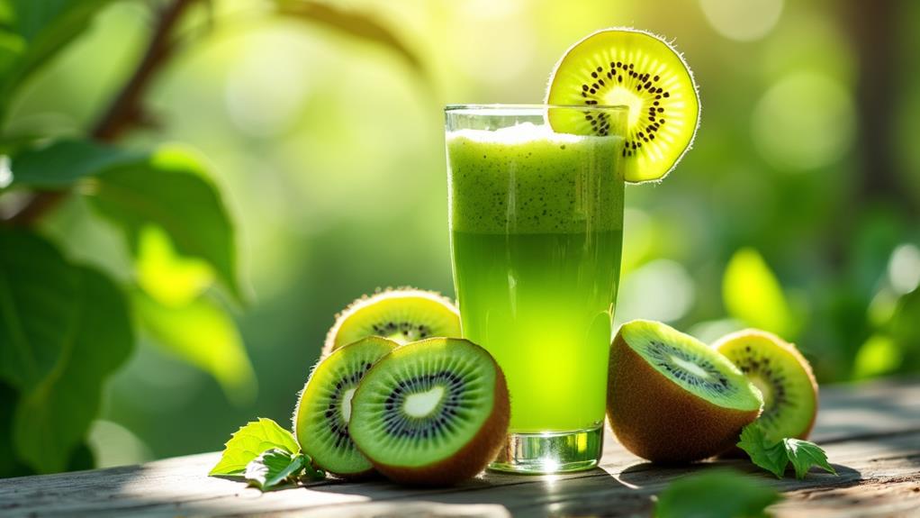 To strengthen your immune system, consider adding kiwi juice to your diet. Packed with Vitamin C, kiwi juice offers over 230% of your daily recommended intake in just one serving, providing strong immune support. This nutrient-dense beverage doesn't just improve immunity; it also helps alleviate cold symptoms and can lead to quicker recovery times. Imagine sipping on a delicious drink that not only tastes great but actively works to keep you healthier.
