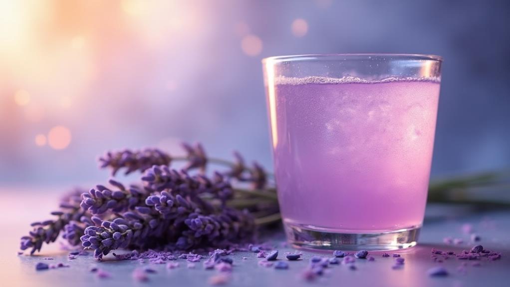 You can ease stress and improve sleep naturally with lavender juice. This calming drink contains linalool and linalyl acetate, compounds known for reducing anxiety and promoting sleep. Mixing dried lavender with lemons, raw honey, and blueberries creates a delicious beverage rich in antioxidants and vitamin C, which helps lower stress-related cortisol levels. For the best effect, drink it chilled in the evening. While most enjoy its soothing benefits, watch for any adverse reactions and consult a professional if needed. With a few more insights, you can uncover how to make this relaxing juice part of your nightly routine.