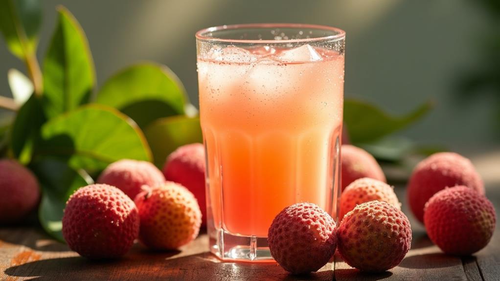 You'll find lychee juice to be a delightful burst of sweetness and hydration. It's packed with antioxidants like polyphenols, which help neutralize free radicals. A serving contains high vitamin C levels, enhancing your immune system and promoting hydration. This juice is low in calories, making it a guilt-free choice for anyone watching their diet. You can easily buy it in stores or online, and it blends well in smoothies, cocktails, or even as a salad drizzle. As you investigate further, you'll uncover more about the unique ways lychee juice can support your health and culinary adventures.
