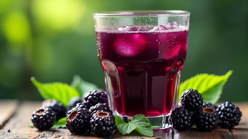 Mulberry juice is a powerhouse of nutrition, offering a low-calorie option with only about 43 calories per 100 grams of fruit. It's an excellent choice if you're looking to enjoy a tasty beverage without packing on the calories. Rich in antioxidants like anthocyanins and resveratrol, mulberry juice boasts impressive health-promoting properties that help combat oxidative stress. You'll find that this juice is not just delicious but also packed with nutritional value.