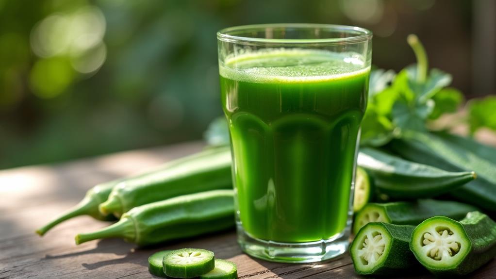 Moreover, the high fiber content in okra juice can also help lower cholesterol levels. By reducing bad cholesterol, you're potentially lowering your risk of cardiovascular diseases and promoting digestive health. Antioxidants found in okra further contribute to this by reducing inflammation and protecting your cells from damage.