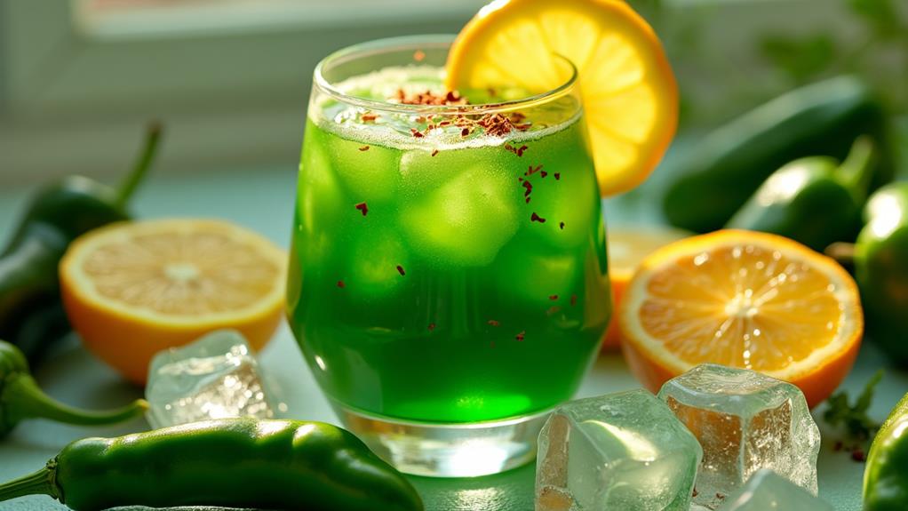 Uncover poblano pepper juice, a mildly spicy drink packed with vitamin C that enhances metabolism and supports your immune system. With 134% of your daily vitamin C in just one serving, it surpasses many other peppers in nutrition. Low in calories, it aids weight management, while antioxidants and fiber promote digestive health and combat disease risk. The juice can be mixed into smoothies or salad dressings, providing a delicious nutrient enhancement. Incorporating poblano juice into your diet is a tasty way to maintain eye health and reduce inflammation. There's so much more to reveal about its benefits and uses.