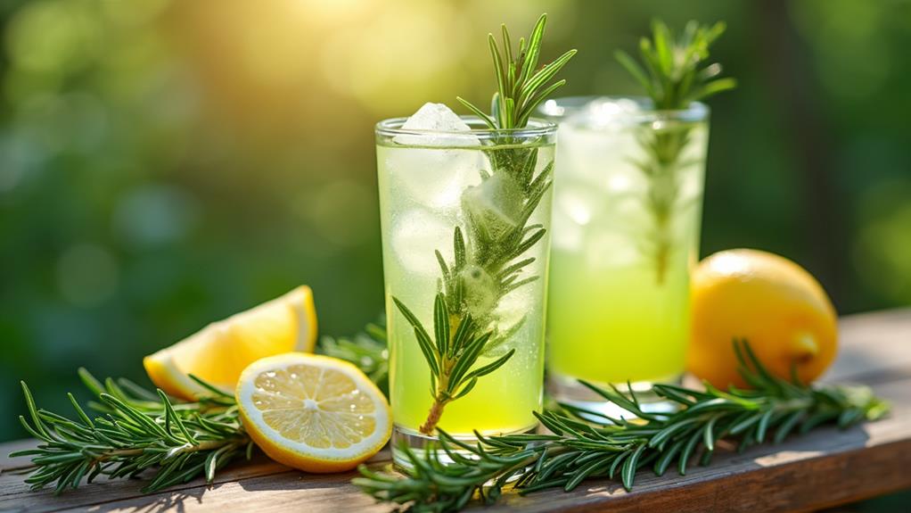 Enjoy the powerful benefits of rosemary juice to elevate your memory and digestion. This herbal juice is rich in 1,8-cineole, which is known to improve memory and mood. Carnosic and rosmarinic acids in rosemary help protect against neurodegenerative diseases, potentially enhancing cognitive function. For your gut health, rosemary juice's antioxidants and anti-inflammatory properties balance gut bacteria and stimulate bile production for better digestion. Its antimicrobial effects further promote a healthy microbiome. Make a fresh rosemary juice by blending rosemary leaves with water for a nutritional lift. Investigate how rosemary juice can improve your health and well-being.