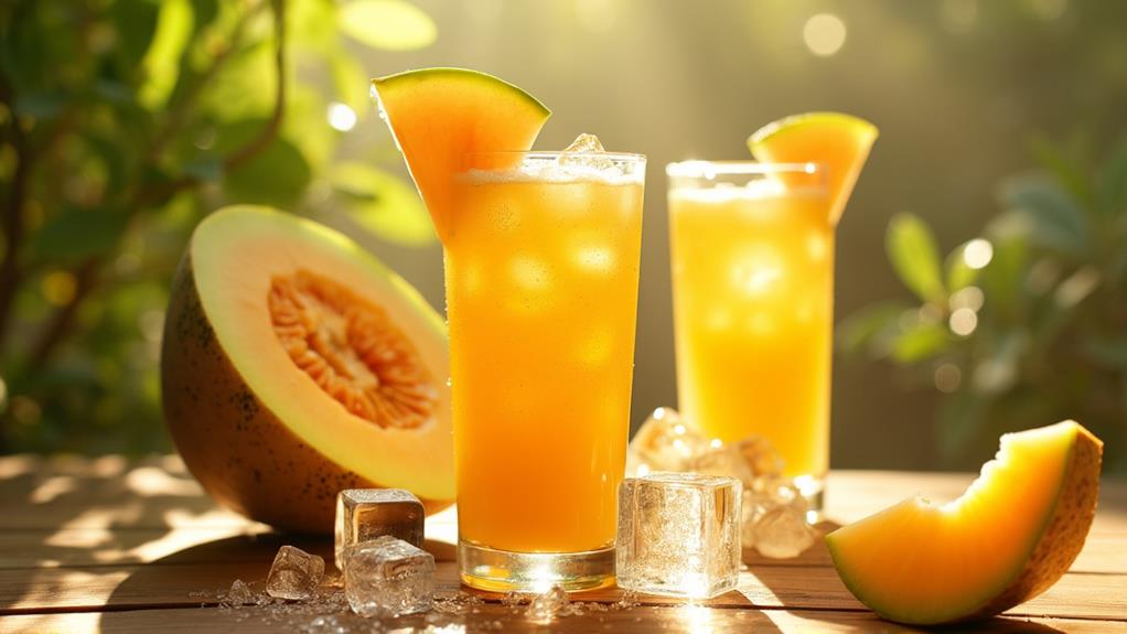 Santa Claus melon juice is your go-to drink for a sweet, invigorating, and hydrating experience, perfect for hot summer days. This juice uses the flavorful Piel de Sapo melon, known for its juicy interior and rich vitamin C content, increasing hydration and immune health. Create your own by blending the melon flesh with water, and elevate the taste by adding honey and lemon juice. Serve this low-calorie beverage chilled over ice for maximum rejuvenation. Its natural sugars deliver quick energy without the guilt of sugary sodas. Ready to investigate more about this delightful summer sipper?