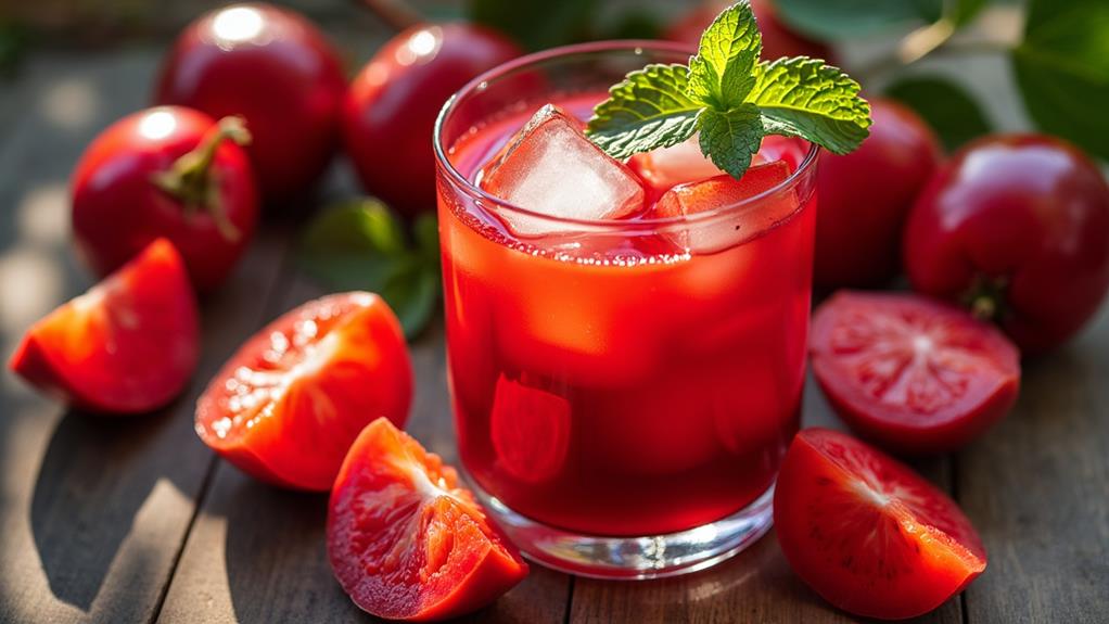 When you're looking to improve your tamarillo juice experience, get creative by blending it with other flavorful ingredients. Start by mixing tamarillo juice with fruits like pineapple or orange. This not only elevates the sweet-tangy flavor but also increases the vitamin C content, making it a powerhouse of antioxidants. For a revitalizing twist, try a detoxifying beverage by combining tamarillo juice with fresh mint and lemon. This concoction supports hydration and provides a burst of flavor.
