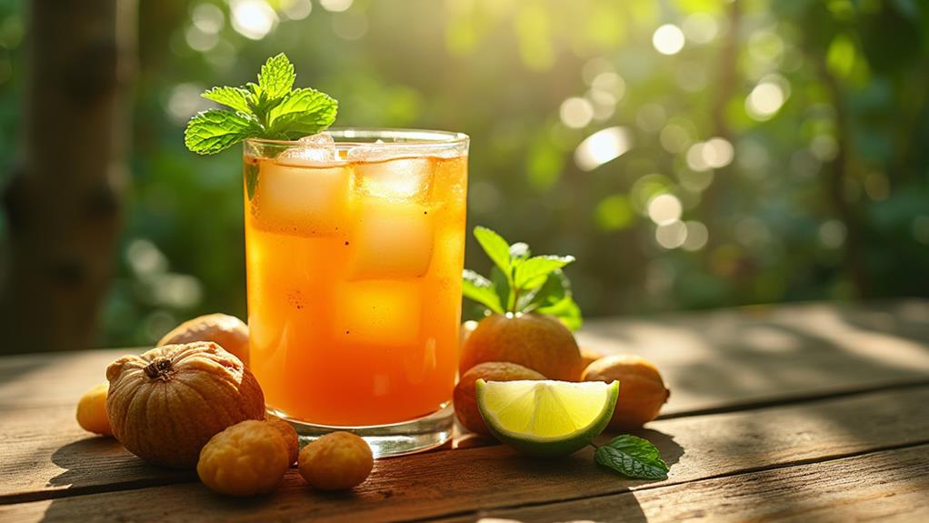 Tamarind juice is your go-to drink for supporting digestive health and detoxifying your body. Originating from Africa and now vital in Indian cuisine, this tangy beverage is packed with dietary fiber to keep your digestive system moving smoothly. Rich in vitamin C, it enhances your immune function while antioxidants like polyphenols fight oxidative stress. The tartaric acid in tamarind raises your digestive enzymes, improving nutrient absorption. Enjoy its natural sweetness without added sugars. For best results, sip it on an empty stomach and start gradually to avoid discomfort. Uncover how tamarind juice can be your ally in achieving gut health.