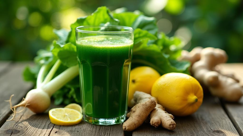 Turnip greens juice is a powerhouse for your immune system and bones. With just one cup, you're getting a hefty dose of vitamin A and K, vital for immune function and bone strength. It packs 33 mg of vitamin C, enhancing your immune defense, while calcium and magnesium support bone health. The juice's antioxidants fight oxidative stress, and its dietary fiber improves gut health, which is critical for a robust immune response. With these nutrients, turnip greens juice acts as a shield against illnesses and strengthens your bones. Uncover more about the amazing benefits it offers for your health.